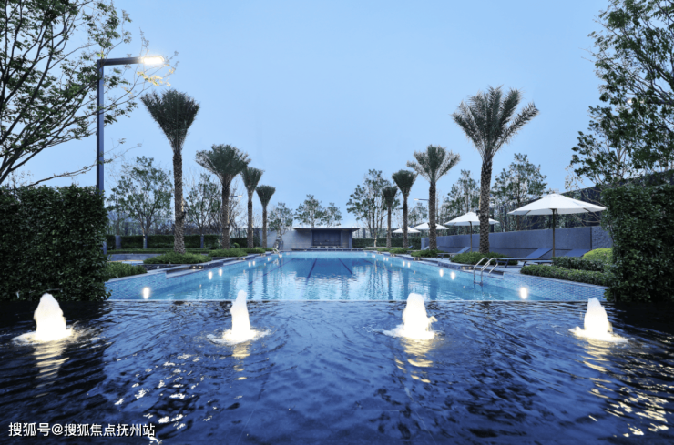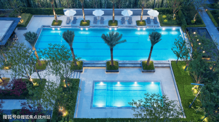 穿过庭院,眼前豁然开朗——参照高端度假村标准打造的双泳池跃然眼前。成人池与儿童池满足全龄需求,更有休闲躺椅、惬意吧台、棕榈树点缀其间。想象周末的清晨在此畅游,或是在夕阳下陪伴孩子嬉水,亦或是在池畔躺椅上读一本好书,度假般的松弛与愉悦,不再是远赴海岛的奢求,而是家门口的日常。