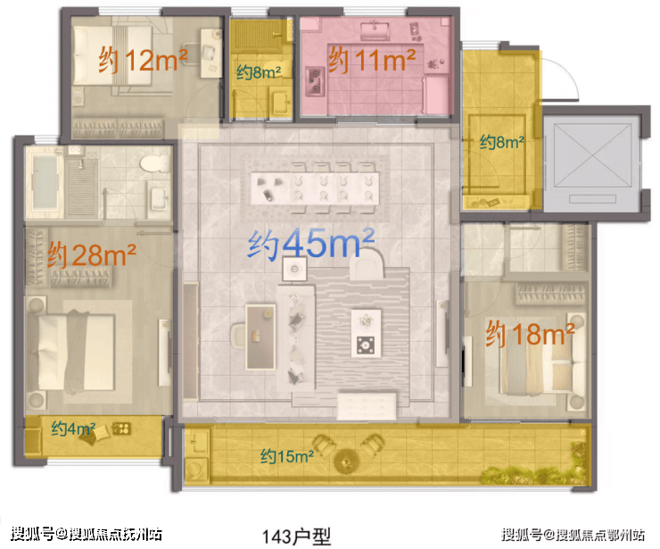 ①户型:143㎡