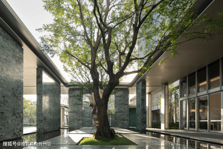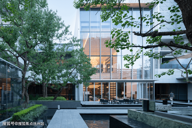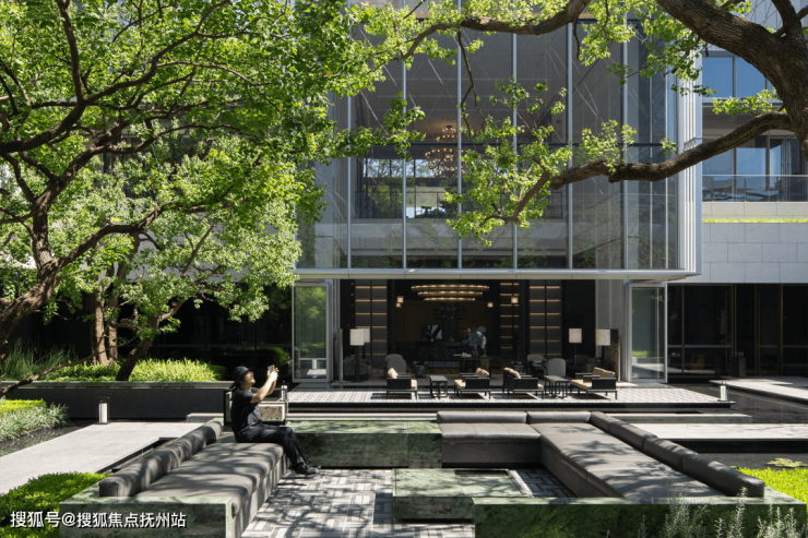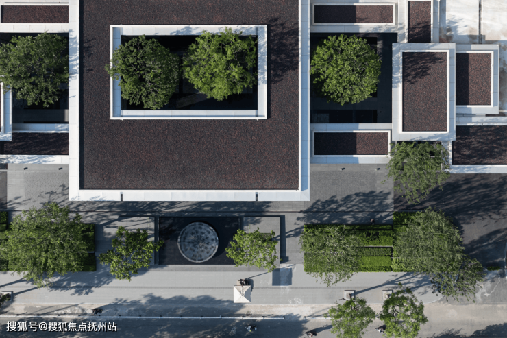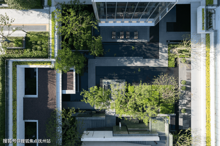 在人的感知范围内,设计通过多重庭院和高大乔木将大尺度化整为零或遮挡消解,创造了空间的丰富性及体感的舒适性。