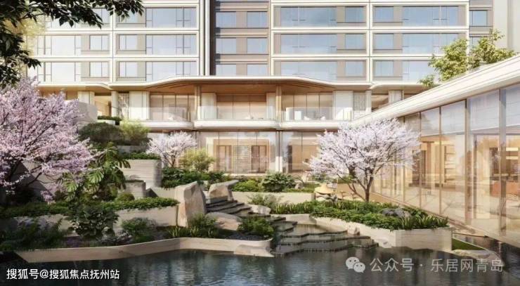 作为金茂"棠系"在山东的首个作品,项目规划了 15 栋洋房与 9 栋小高层,错落排布,营造出公园般的群落体验。走进社区,约 33 米宽的社区大门、风雨连廊、静谧水景,每一步都是一场归家的仪式感之旅。