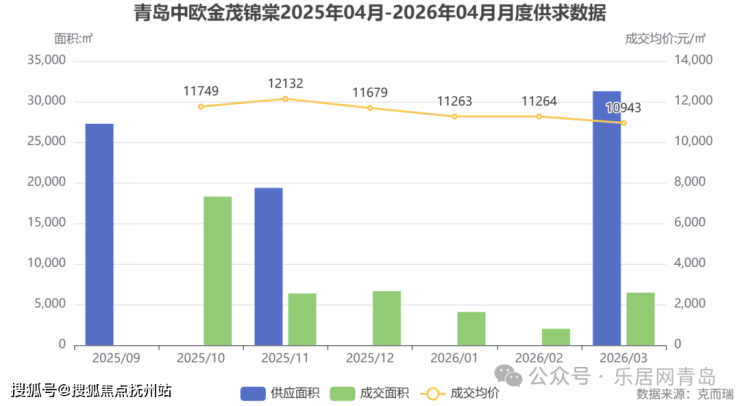 数据解读:克而瑞数据显示,项目 2025 年 10 月成交面积 18287㎡,成交均价 11749 元/㎡,此后价格稳定在 1.1 万元区间。近期成交节奏平稳,其价格体系始终维持在万元左右的高性价比区间,为登顶榜单奠定了坚实基础。