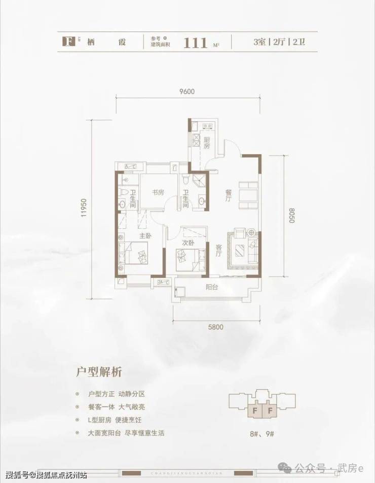 户型方正,三开间朝南,5.8米南向阳台,动静分区,主卧带套间设计,刚需人群!