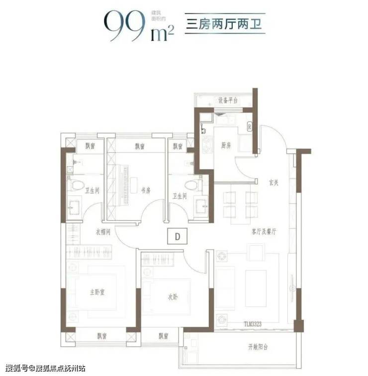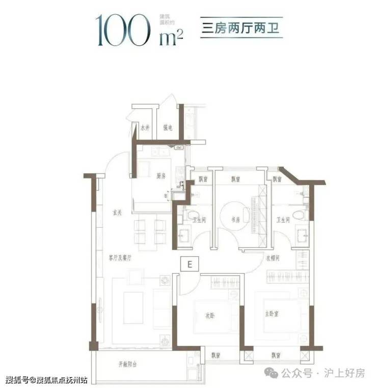 户型特点:3开间朝南,全屋阳光充足;L型厨房转角移门设计,最大化空间视野;四飘窗设计,通透空间享受;动静分区,亲密有度;套房式主卧,容纳私谧生活点滴;