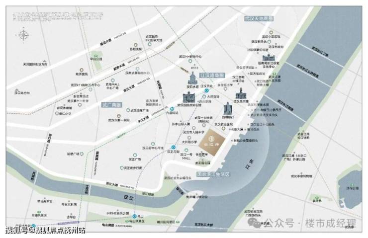 沿江大道、中山大道、江汉路等城市交通主脉在侧,近邻地铁6号线,2号线、13号线(规划中)三轨交汇,武汉长江大桥、晴川桥、武汉长江隧道、武汉长江公铁隧道