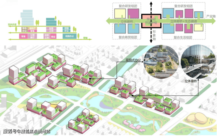 这是前所未有的大规模整体更新,通过交通枢纽、立体街区、花园办公、生态住区等模式的建构,激活整个片区的热度和活力。