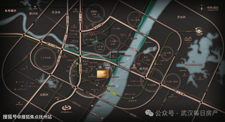 连为一体后,就像城市里的黄金十字中轴,于汉阳内环钟家村交汇