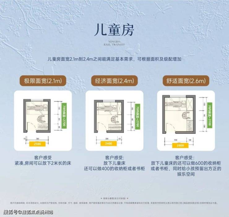 基于面宽尺度从极限、经济再到舒适的考量,和晏府为了进一步提升每位家庭成员的生活体验,所有户型的次卧均做到了3.2米及以上的面宽尺度,让处于成长期,需要独立学习与休憩天地的孩子,能够实现独立完整、松适有度的全新享受。