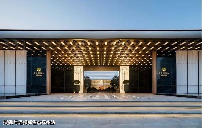 主入口以展卷繁花、丝府波光为主题,长度45米高度6米,远眺秀湖比邻河道,设计以水波纹为设计理念,通过折板的方式,仿照编织的手法设计了主入口的吊顶样式,也呼应嘉兴丝绸之府的历史传承