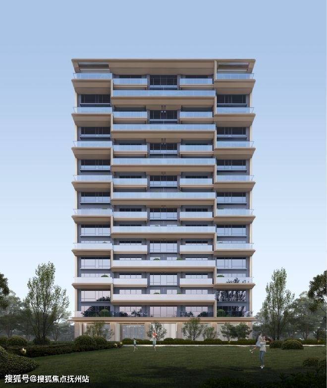 将庭院、花园与现代高层建筑相结合,做到户户有花园、家家有庭院,形成层叠错落的立体绿化空间。项目同时也是秀洲核心第一个墙面铝板干挂住宅,南面层间嵌入金色线条,搭配大面积low-e玻璃,山墙采用浅灰色铝板,外观通透、光洁、轻盈,极具质感。