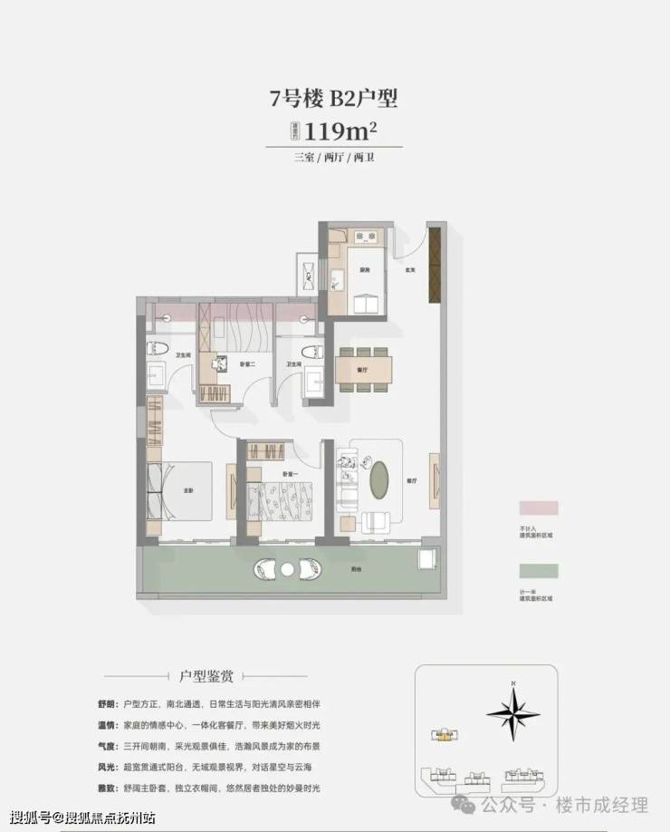 准四代大宅:着眼未来标准,超高得房率,三面宽阳台,日照采光、观景体验俱佳