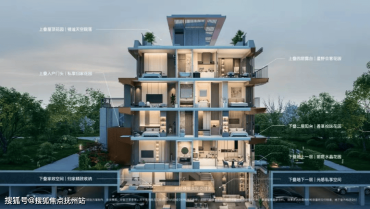 在这个立体空间体系中,摒弃了叠加别墅中资源更加集中在下叠、而忽略上叠居住尺度的传统设计,而是做到了史诗级的创新,实现真正的平权——