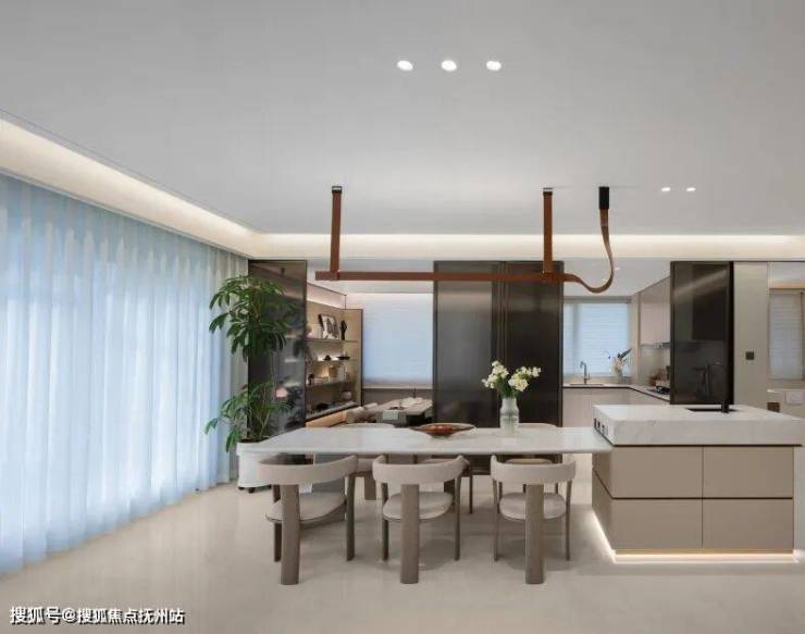 和而有距,各有天地。身处客餐厅中的公区部分,这里没有阻隔,尽显宽敞。客餐厅空间动线规划,也为日常聚会释放了更多的空间。无论是家庭小聚还是朋友接待,宽敞的客厅游刃有余,不显局促,也为家人彼此进行日常沟通与情感交流提供更多可能。