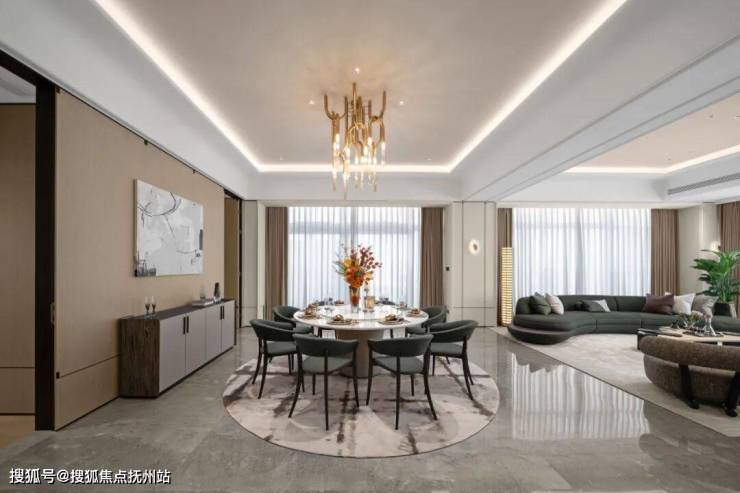460㎡“领潮”户型:梁志天团队设计,近360°寰幕视野,16米南向面宽,LDK一体化方厅达110㎡]。
