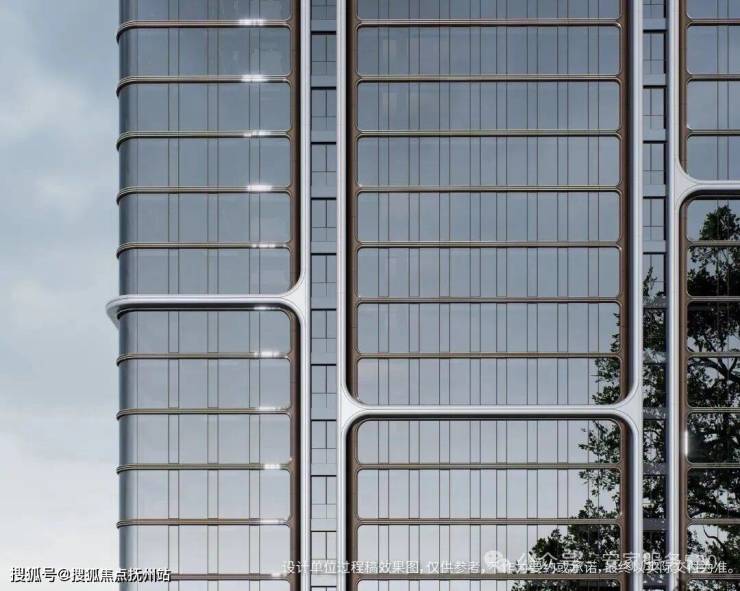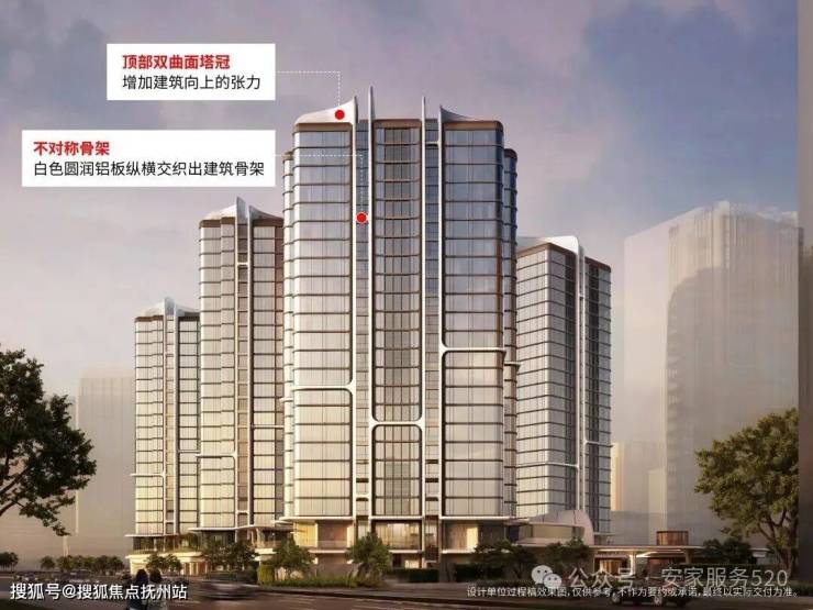 1、首先是立面极具未来感:不对称骨架造型+玻璃舱体,顶部双曲面塔冠挺拔向上。