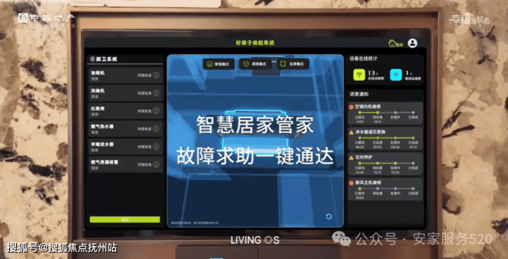 举个例子,配置Living OS智慧中枢,在操控面板上就可以看到全屋设备的状态,包括使用说明书、故障求助等,都可以一键通达。业主在未来生活中无需收藏说明书或去牢记维保周期,在这个“智慧居家管家”面板上都能轻松搞定。