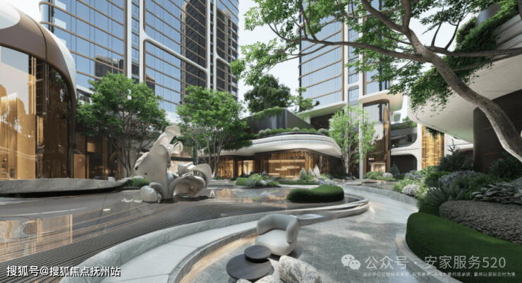 3、项目联合ZHA扎哈·哈迪德建筑事务所和gad杰地设计,其中ZHA担任了整体规划及建筑概念设计与超平层地块全过程建筑设计,对每一幢楼的角度都进行了调整,借势江水,水生财,这也是富人宅邸的自我修养。