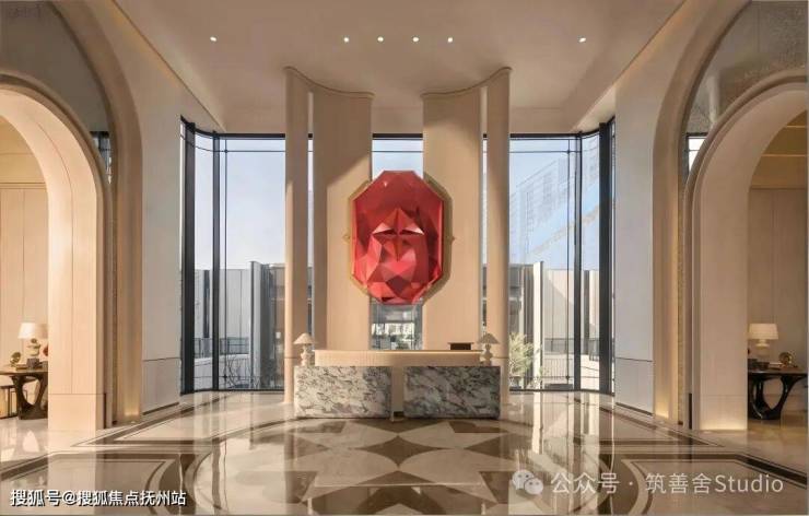 以中式“老钱风”为设计精髓,酒店式落客区尽显尊崇。约76米宽、9.4米高的双子门庭,恢弘大气。罗汉松傲然挺立,寰宇奢石铺陈其间,艺术雕塑点缀其间,共同构筑江滨奢居的封面。每一处细节,都为塔尖人士量身定制,只为烘托极致的归家仪式感。