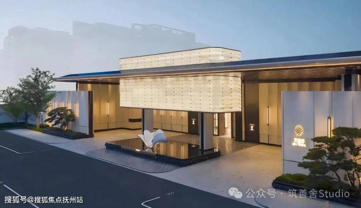 下沉式庭院以“泗水归堂”的围合设计,巧妙汇聚四方之水,寓意“聚财纳福”。晴日水光流金,雨天波光洒银,景致变幻万千。庭院四周百年老树与乌桕成荫,绿意盎然。中央“瓯曜门庭”主题雕塑,演绎“水绕玉环,漪生珮响”的意境,形藏风聚气。池底奢石采用幻影蓝,与巴黎丽兹酒店同款的蓝钻奢石相映成辉,皆为自然孤品。地形还原“错落水景”等自然地貌,呈现“水光晃动,曲水流觞”的立体动态美感,视觉震撼。