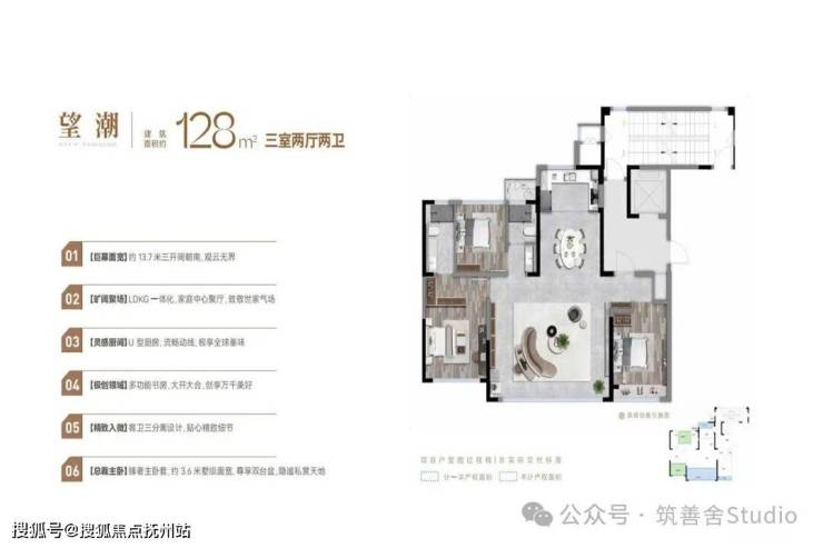 128㎡全能三房,约13.7米超大面宽,搭配约6.9米横向宽厅,让家如透明玻璃礼盒般通透开阔。多功能书房,可变身为茶室、游戏室或客房,X空间设计诠释第四代住宅的平权生活理念。顶奢主卧,约3.6米墅级面宽,配备双台盆设计,尊享以往仅见于200㎡以上大户型的奢华配置。