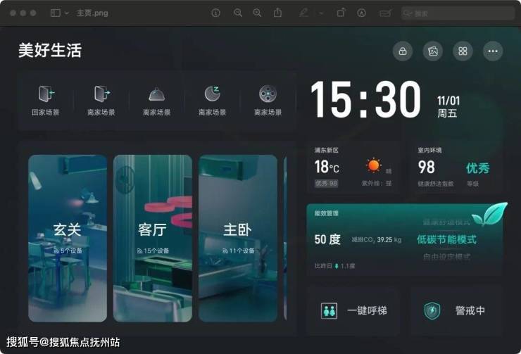 这或许能从一些细微的体验中感知:归家时,从社区大门到入户电梯的全程无感通行,让疲惫在踏入家门前便已卸下一半。室内,空气始终维持着森林般的清新,新风系统在雾霾天早已悄然启动。深夜起身去主卫,灯光自动亮起,离开后又静静熄灭。这些润物无声的细节背后,是一套完整的“五舒智慧生活系统”在支撑,它让科技不再是概念,而是融入日常、守护家人健康的“隐形管家”。