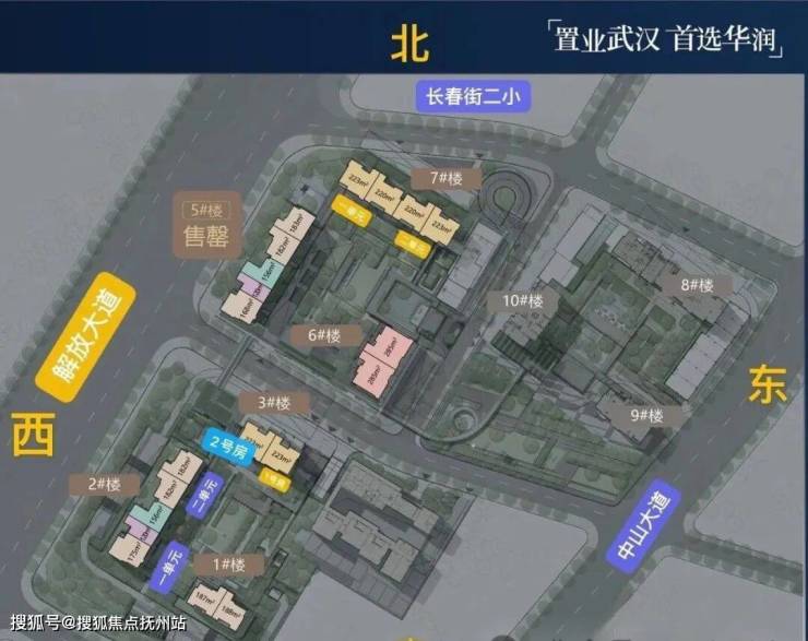 武汉华润瑞府位于江岸区解放大道与分金路交汇处,项目分为A、B、C三个地块开发,项目规划用地面积约5.3万方,总建面约29.8万方,计容建面约21.5万方,容积率约4.0,建筑密度约20.53%,绿地率约30%。 项目共 9栋建筑, 包含 高层、超高层住宅,其中6栋和10栋为建筑高度202米,装饰高度212.9米/59层,约213米的超高层住宅。