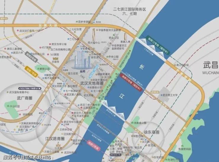 武汉瑞府位于解放大道与头道街交汇处,在楼市划分中属于二七滨江核心区,行政划分属于江岸区,环线位置在二环内,内环边。