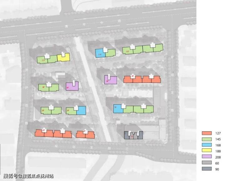 项目整体社区不大,共打造13栋6-11层的洋房产品,整体呈南低北高布局,总户数262户。