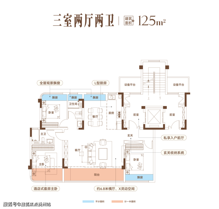 建面约125㎡三房:实现功能与舒适的平衡