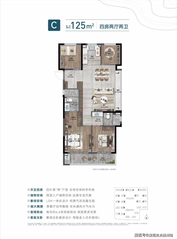 潮阅尚境四房户型不多,但同样也是精雕细琢过的。