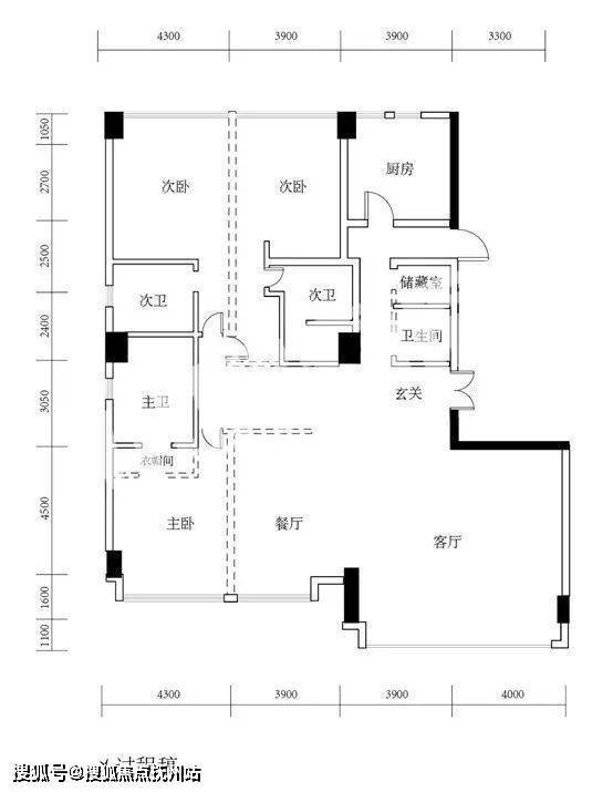 上面这张应是240㎡的三房四卫过程稿户型图,南向超过16米,阳台包进,餐客厅一体,形成了40多平的阔绰方厅,一条变化颇多的回游动线。主卧与2个次卧均套房设计,另有单独的储藏收纳间,相当