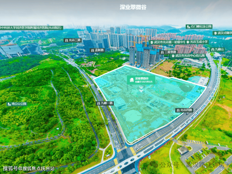 深业翠微谷坐落于九峰一路与光谷四路交汇处,属于光谷东板块。项目的东侧和南侧都是公园,且距离非常近。
