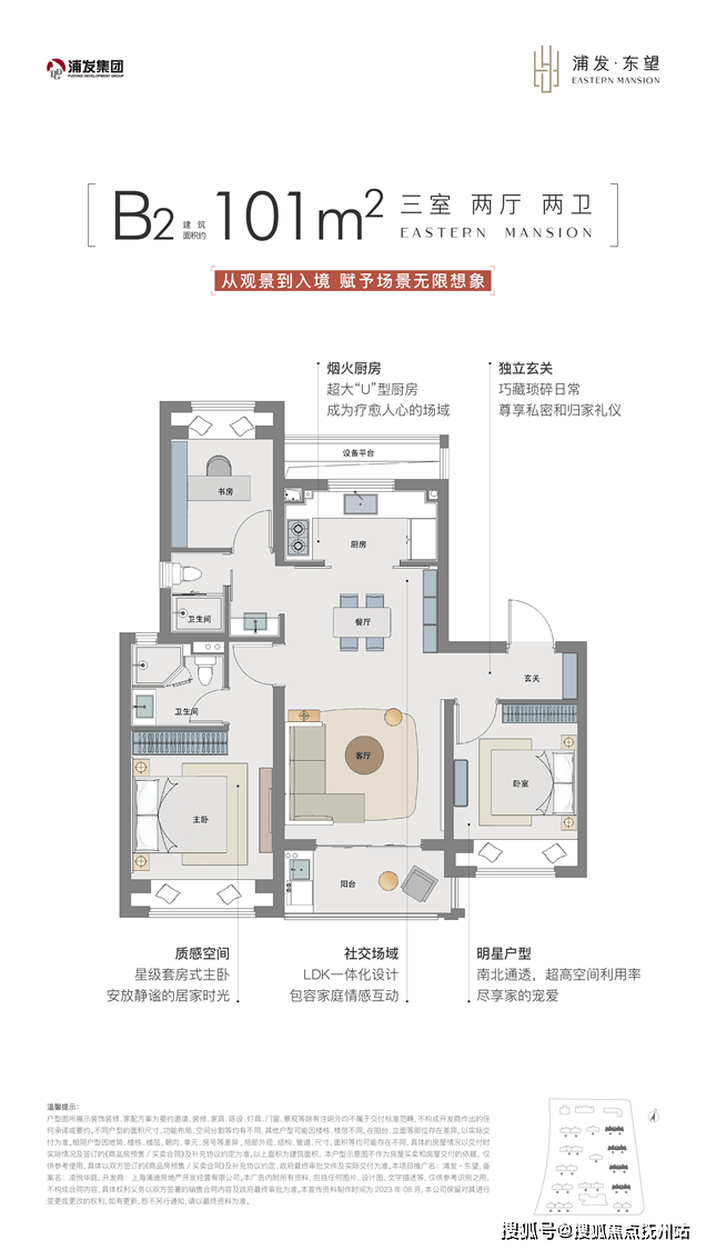 B1户型更是罕见的在这个面积段,做到了横厅设计,进一步放大尺度感,简直是必抢的存在