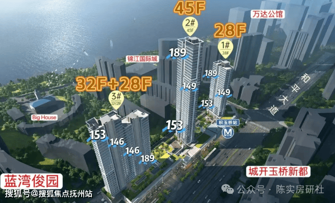 楼栋规划及项目户型项目一共3栋楼,1号楼28F,2号楼45F,3号楼两个单元,一个28F,一个32F。项目户型为146/153/188㎡。其中,1号楼和2号楼,2-15F都是153㎡户型;16F及以上,西边户是188㎡户型,东边户是153㎡户型。