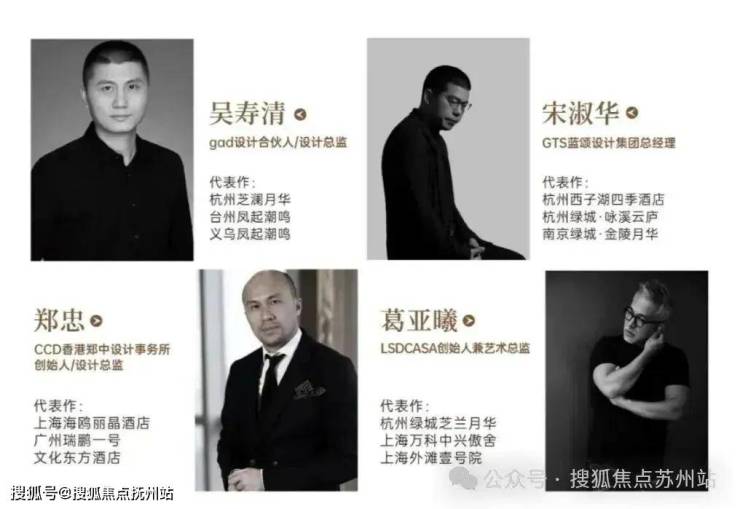 绿城·苏州凤起潮鸣,由gad设计合伙人吴寿清,蓝颂总经理景观大师宋淑华,CCD创始人室内设计大师郑忠,LSD创始人兼艺术总监葛亚曦倾心合著,以大师之作著写潮鸣永恒。