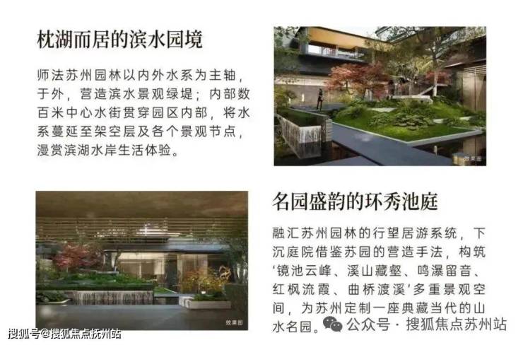 依凭半岛三面水岸的天然资源,以“一堤三面湖”和“水街襟两园”设计笔触,实现滨水互动、开门见水的场景体验;融汇吴门画派、苏州园林造园理念,营造出一座温润如玉的流动庭园。