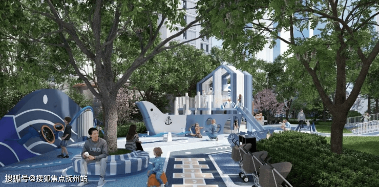 中轴对称空间布局,臻造社区全龄会所,集运动、亲子等多功能为一体,缔造有温度的生活领地