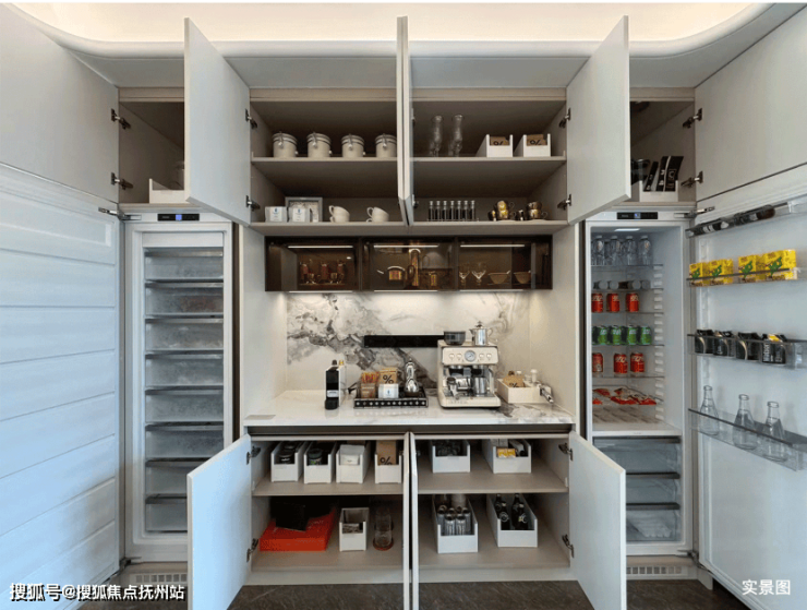 以绿城·沁百合约181㎡户型为例,全屋收纳空间约15m³(相当于300+个登机箱),入户玄关就有两组超大通顶收纳柜,钓鱼杆、宝宝推车、行李箱、鞋子等全都安排妥当。厨房不只有上方柜体拉篮、下方碗篮抽屉、调料抽拉柜,水槽下面的还专门做了一个下翻抽……每一处考究,都是人本的思量,只为回应当代家庭的真实改善需求。