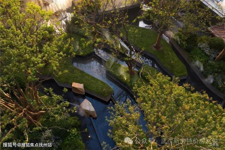 山地园林样本 山水交融的隐世花园光谷壹号院依山势造园,汲取世界名园的设计灵感,以中国苏州拥翠山庄、美国波特兰凯勒喷泉公园、美国纽约泪滴公园为蓝本,精构台地,跌水成瀑。依托三山环抱、一湖潋滟的天然基底,构建"可居可游"的山地生活范本。