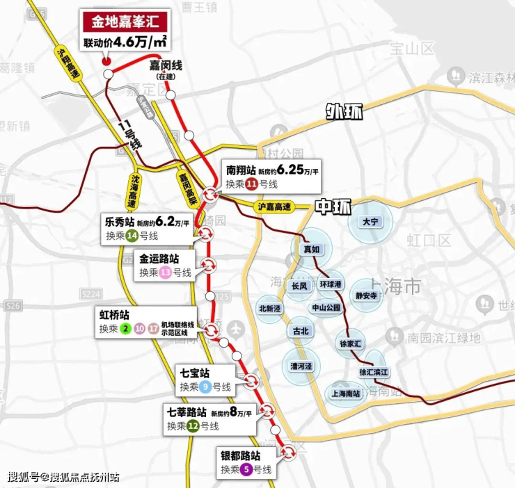 金地嘉峯汇距11号线仅500米,离在建的嘉闵线约200米,8站直通大虹桥,是当下400万级中少见的双轨交盘。