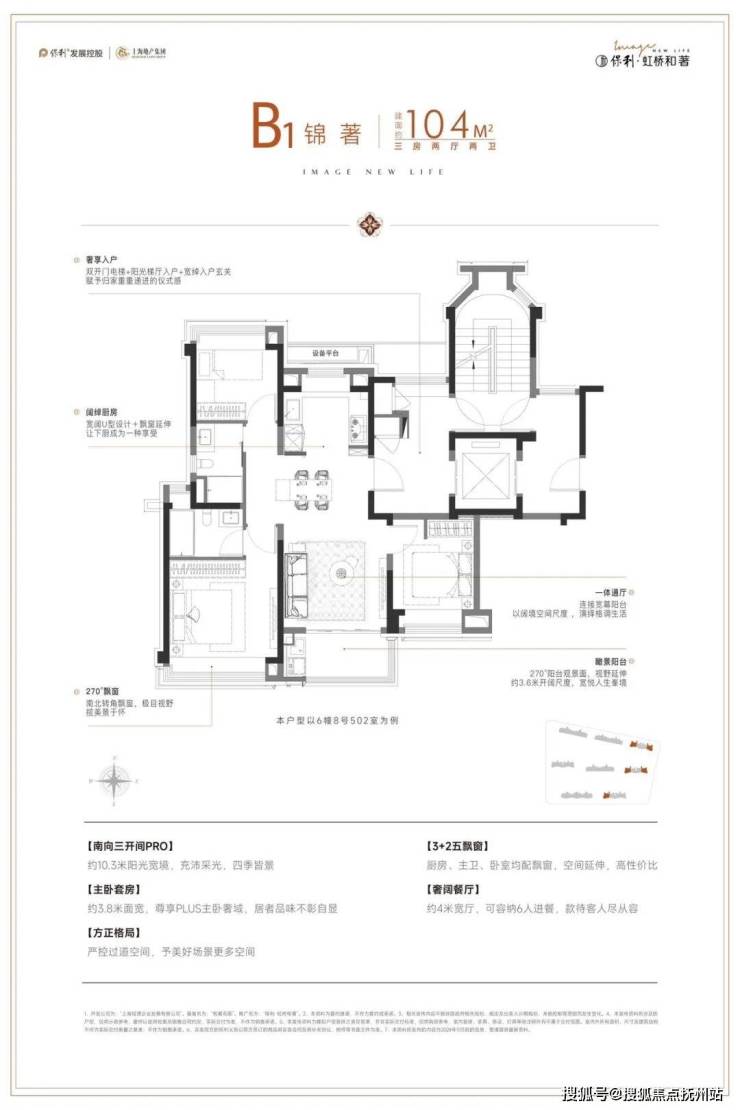 约10.3米的南向面宽+3房5飘窗1阳台,解决采光以及收纳等问题:
