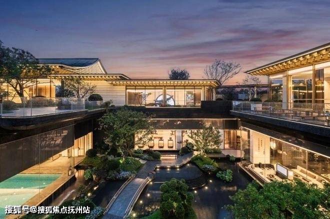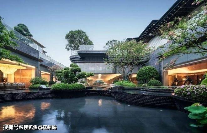 项目由GAD蒋愈设计,取意宋徽宗的瘦金体,相比传统中式的厚重,显得轻盈了不少。阳台采用一体成型的玻璃栏板,立面转角采用金属圆边包角柔化,园林以“湘湖八景”为灵感,颇有大宅的气质。