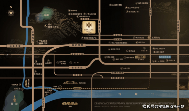 该项目坐落于东湖新城核心区位,毗邻杭州4A级超山风景区。项目由临平交通集团与绿城中国强强联手,汇聚浙江绿城利普建筑设计、蓝颂园林设计、甲鼎室内设计、AKASA万界设计等顶尖设计团队,以现代技法诠释东方审美,精心打造227户宋韵美学院落,绘就当代杭州的《溪山行旅图》。