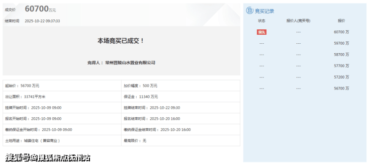 该项目即乌衣浜及周边地块,于2025年10月22日成交,楼面单价15643元/㎡,竞得单位为常州晋陵山水置业有限公司。