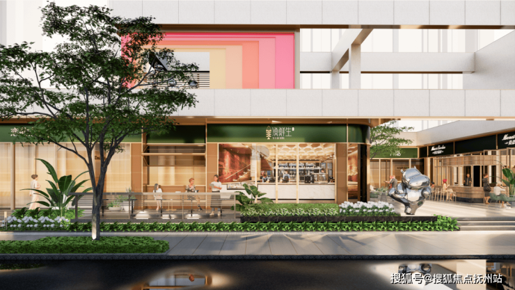 两盒两场:学习盒子+邻里盒子+街区聚场+活力聚场,设置约500方的商业面积,预留餐饮条件,共享缤纷生活打造归家的美食天地;同时通过活力外街,生活内街,消融生活边界, 多元外摆空间结合活力商铺, 营造最美人间烟火气。