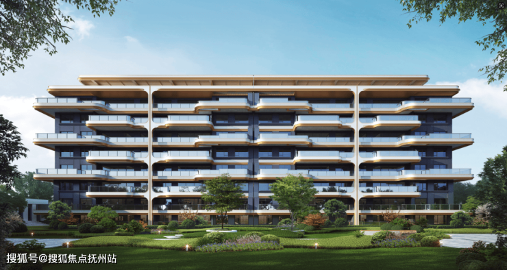 君麓花园的外立面设计是其建筑美学的重要体现。设计师在溯源城市文脉的过程中,提取了“水”的流体元素,重新解构成“超流体”的艺术概念,同时淬炼现代建筑风格中“弧形玻璃”“横向线条”等经典元素,打造出独特的无边美学曲线立面。