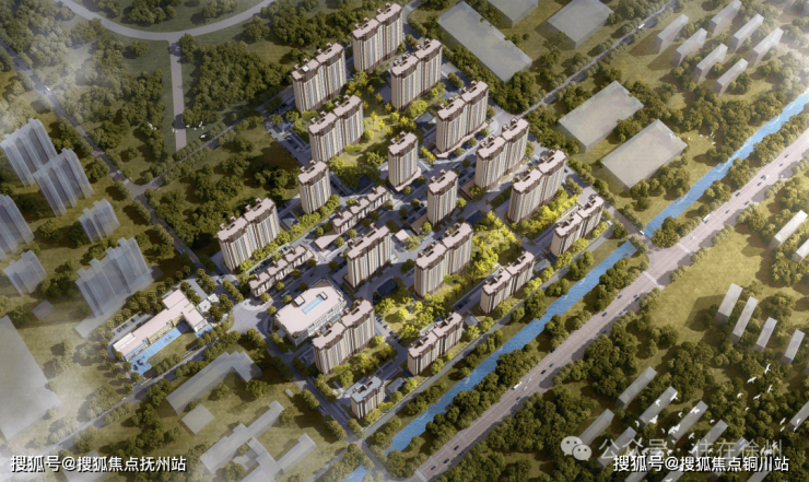 项目效果图:A地块(A区住宅20栋+邻里中心+幼儿园)