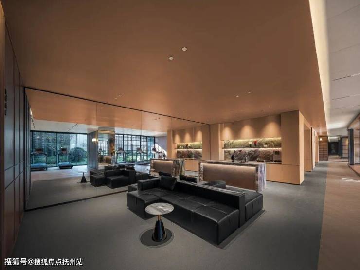 想要运动一下,会客厅的一侧就是星级酒店规格的健身空间,奢石水吧台、休憩区、独立卫生间,还有一方“浮岛式”的瑜伽房……整个健身空间都使用了可开合的折叠落地玻璃门,天气适宜时,可以畅享阳光与清风。