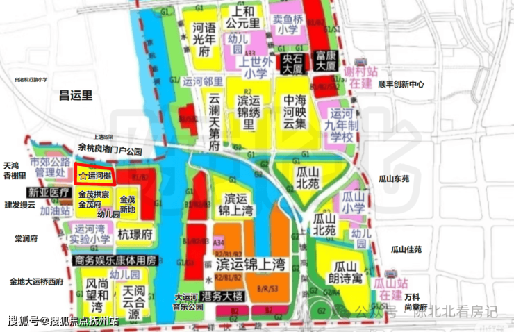 4. 南面紧邻的是拱宸金茂府以及规划幼儿园。再往南就是运河湾实验小学和杭璟府,后续学区大概率是在这里。