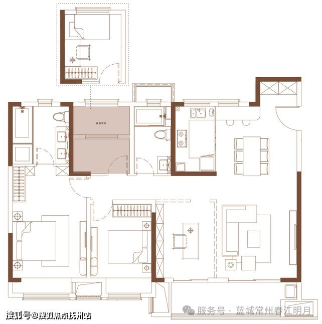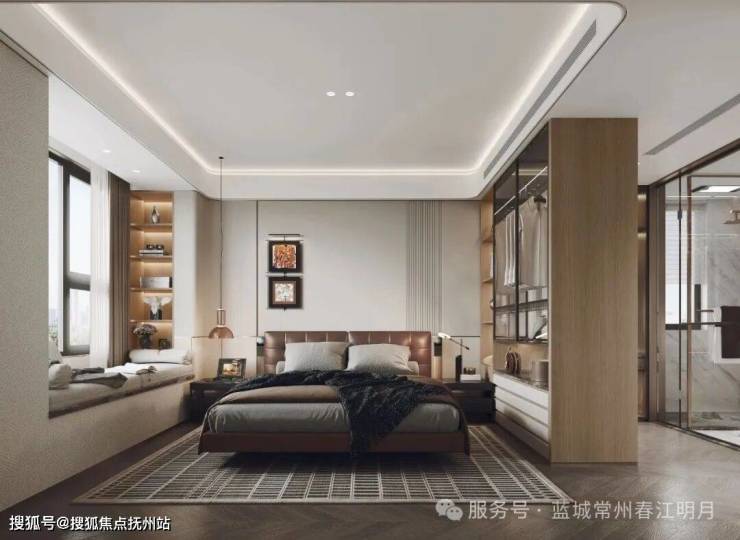 北向次卧专为父母预留——重阳来访时在此小住;或改造为书房,丈夫处理工作时,抬眼可见客厅里妻子为母亲梳理白发。主卧飘窗铺设软垫,便成父母的私密休闲区,远眺运河秋色,近观社区园林,将温馨时光细细收藏。