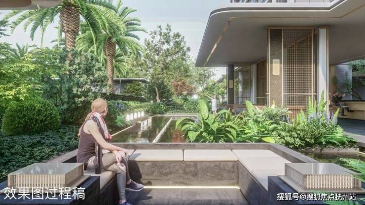 近年来,开发商从架空层“卷”到了泳池,伟星也不例外。泳池不仅搭配了常规的躺椅,还有儿童嬉水区、中央休憩区、吧台观赏区、SPA池……泳池部分有纵向深度,空间感十足。